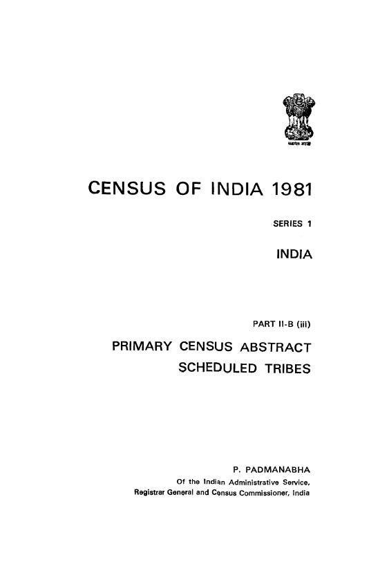 Primary Census Abstract Scheduled Tribes, Part II-B (iii), Series 1, India - Census 1981