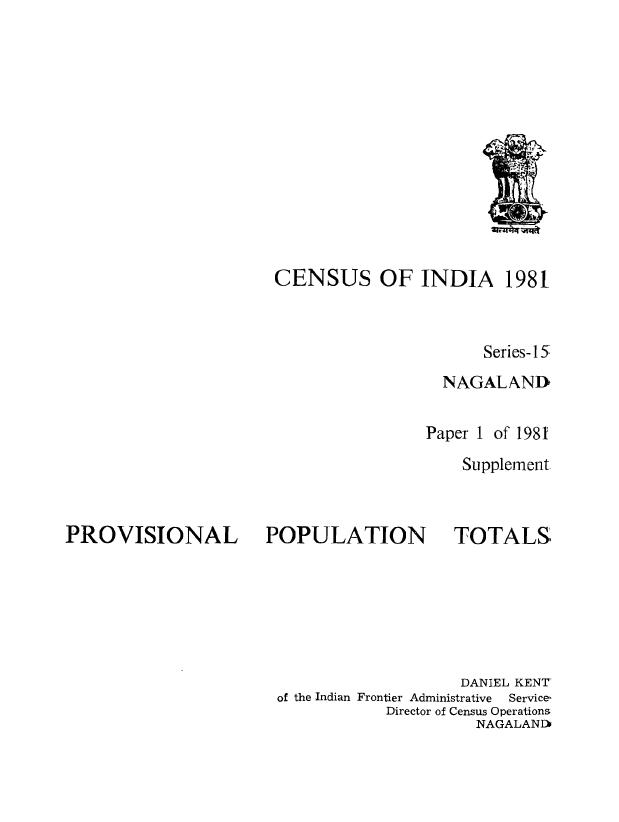 Provisional Population Totals, Series-15, Nagaland - Census 1981