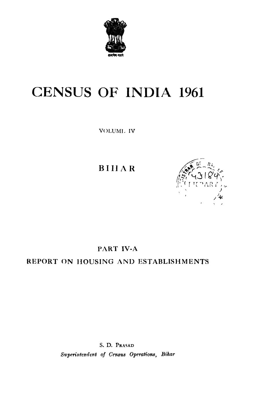 Report on Housing and Establishments, Part IV-A, Volume-IV, Bihar - Census 1961