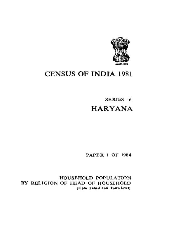Household Population by Religion of Head of Household, Series-6, Haryana - Census 1981