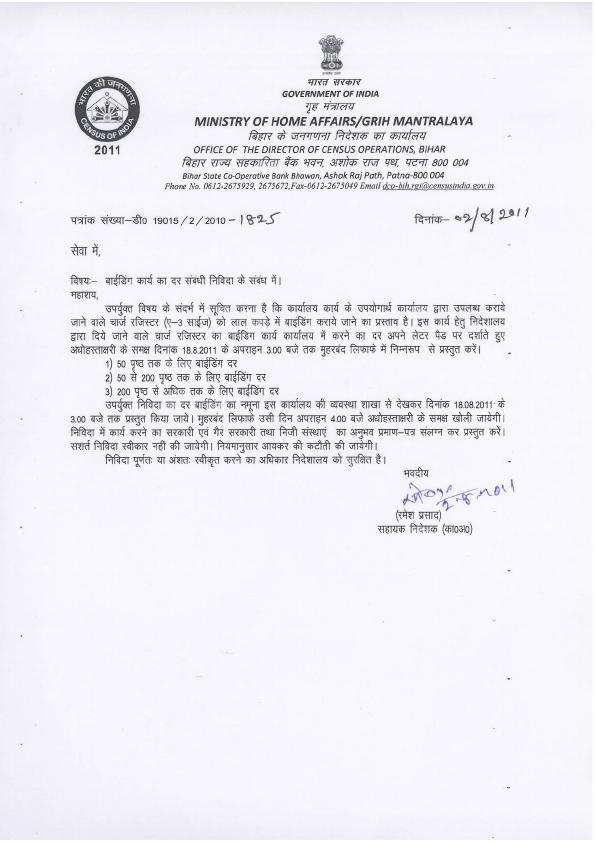 Tender for Binding of Charge Register (DCO-Bihar)