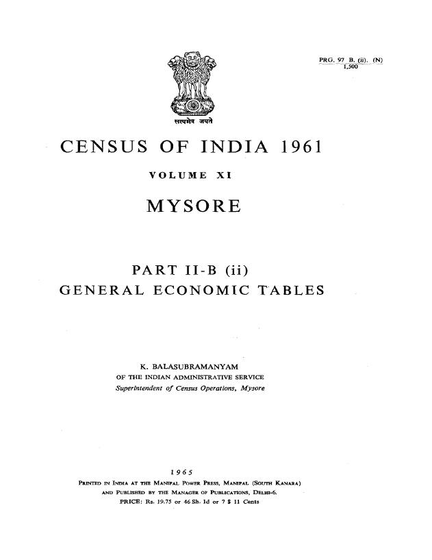 General Economic Tables, Part II-B (ii), Vol-XI - Census 1961