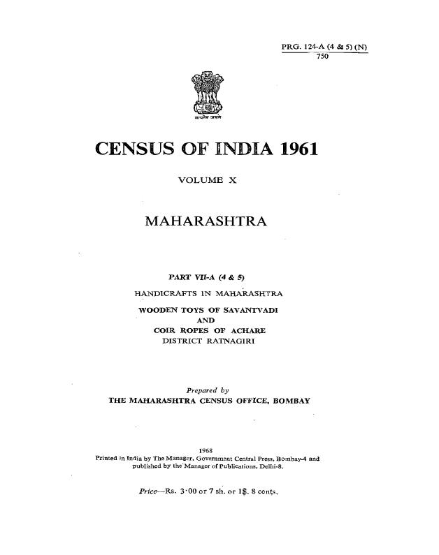 Handicrafts in Maharashtra, Wooden Toys of Savantvadi and Coir Ropes of Achare District Ratnagiri, Part VII-A(4-5), Vol-X, Maharashtra - Census 1961