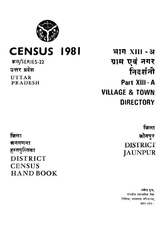 District Census Hand book, Jaunpur, Part-XIII A, Series-22, Uttar Pradesh - Census 1981