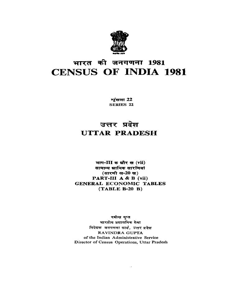General Economic Tables, Part III-A & B (vii), Series-22, Uttar Pradesh - Census 1981
