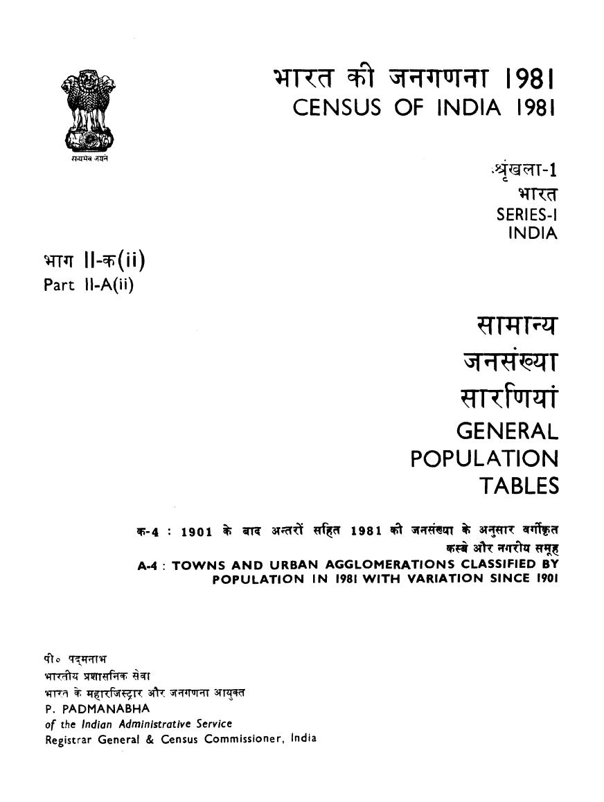 Social and Cultural Tables, Part IV-A (i), Series 1, India - Census 1981