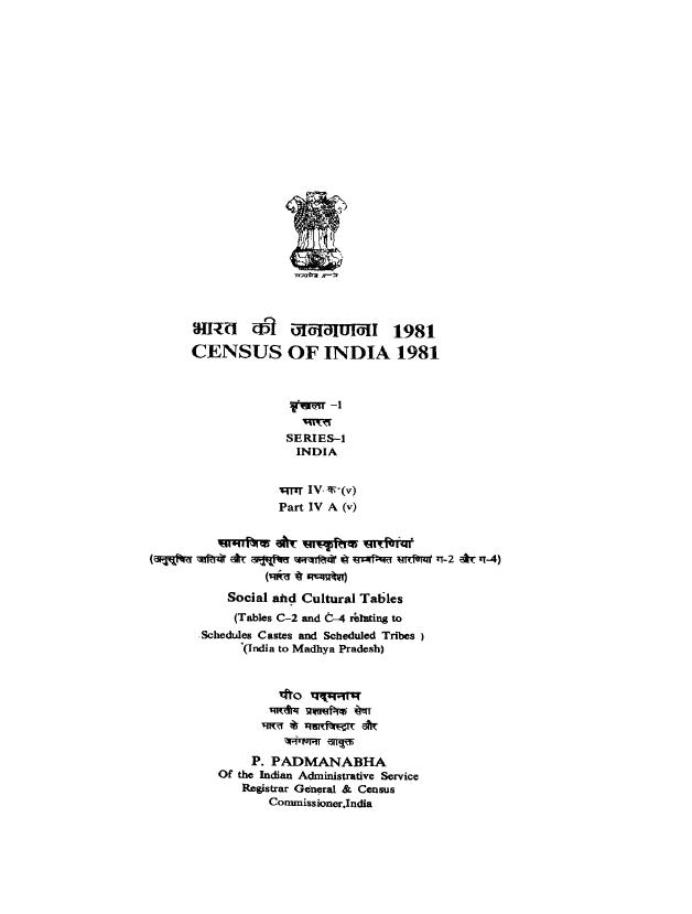 Social and Cultural Tables, Part IV A (v), Series-1 , India - Census 1981