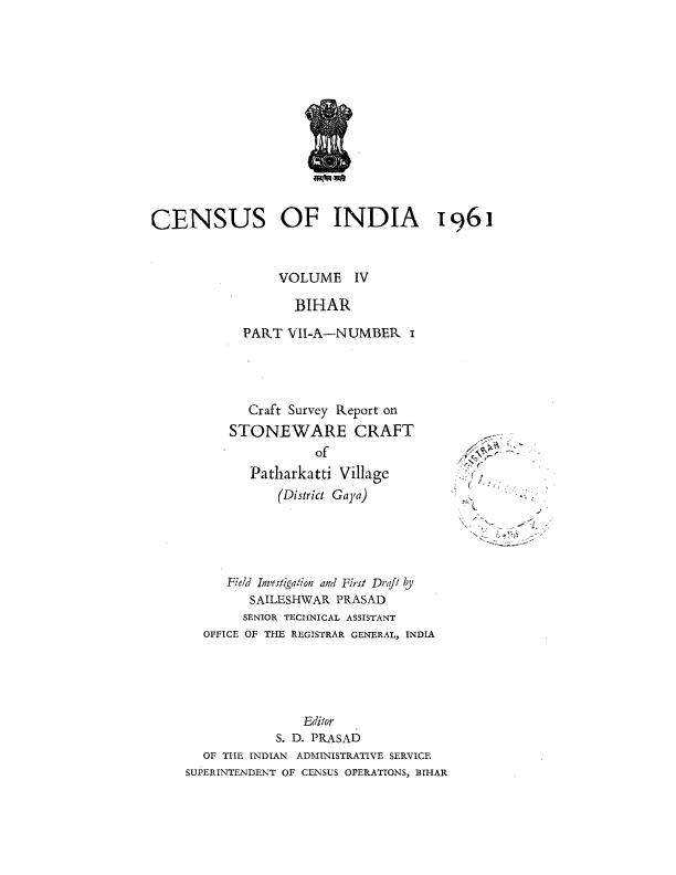 Stoneware Craft of Patharkatti Village, Part-VII-A, Vol-IV, Bihar - Census 1961