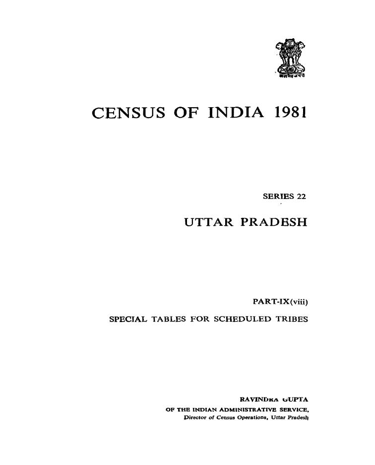 Special Tables for Scheduled Tribes, Part-IX (viii), Series-22, Uttar Pradesh - Census 1981