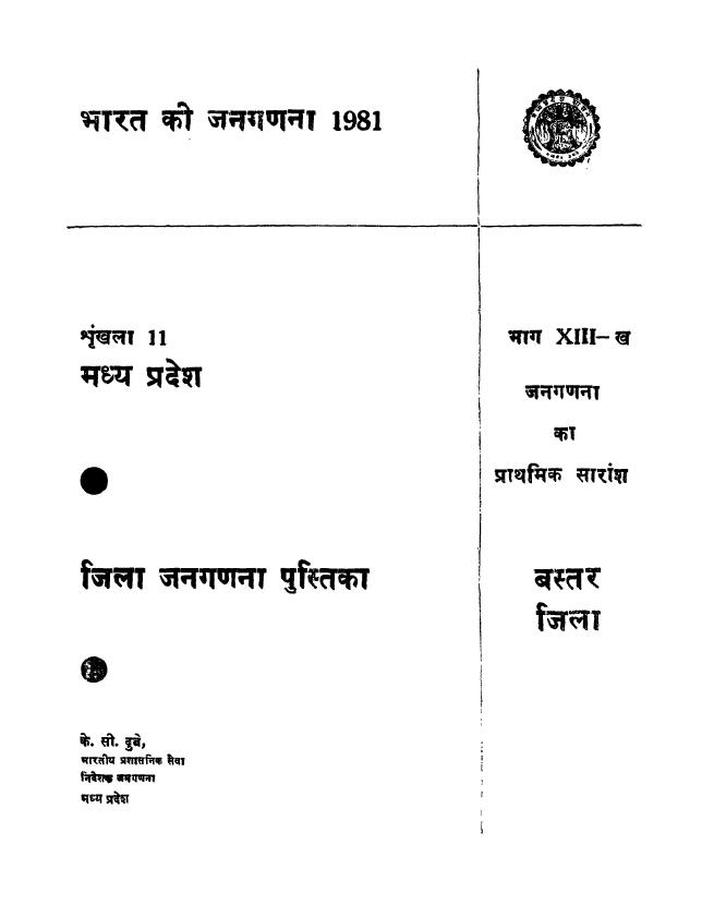 District Census Handbook, Bastar, Part XIII-B, Series-11 - Census 1981