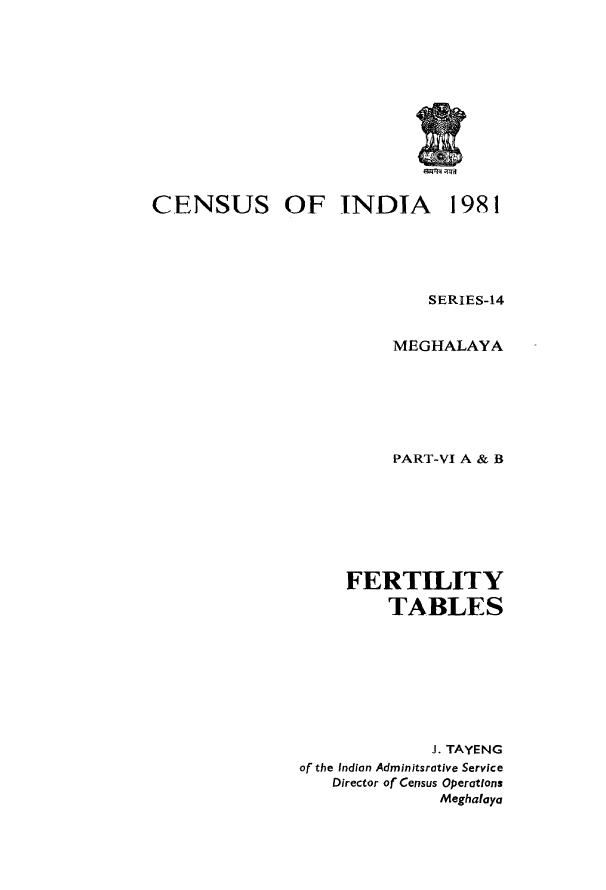 Fertility Tables, Part VI A & B, Series-14, Meghalaya - Census 1981
