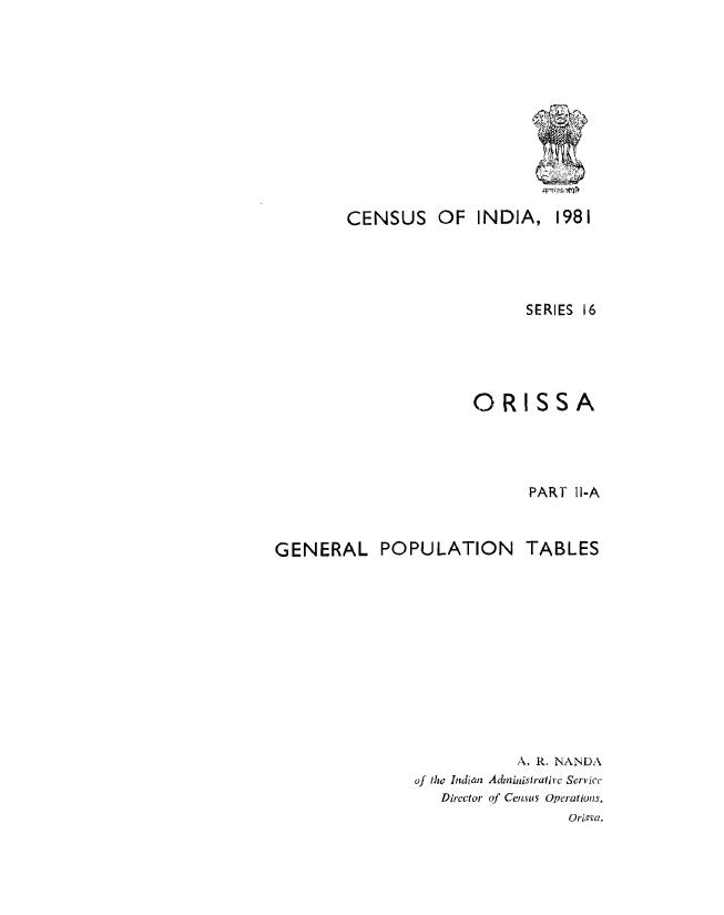 General Population Tables, Part II-A, Series-16, Orissa - Census 1981