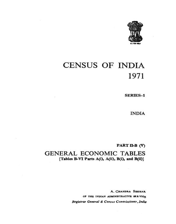 General Economic Tables, Series-1, Part II-B(V), India ` - Census 1971