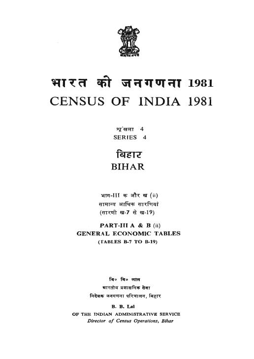 General Economic Tables, Part-III A & B, Series-4, Bihar - Census 1981