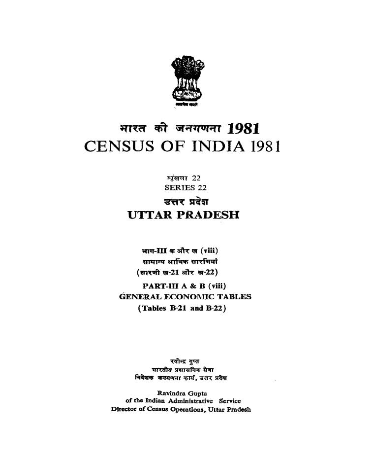 General Economic Tables, Part III-A & B (viii), Series-22, Uttar Pradesh - Census 1981