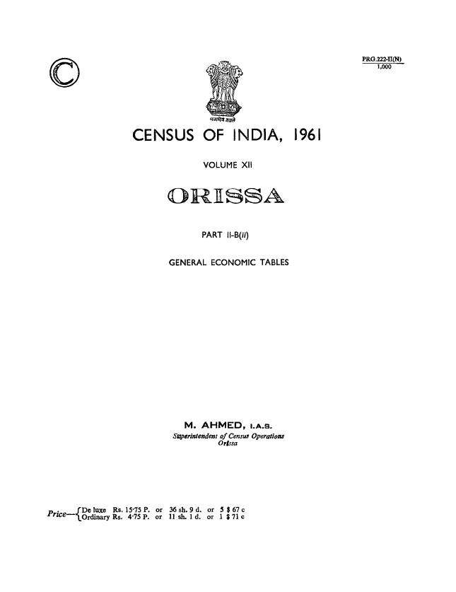 General Economic Tables, Part II-B(ii), Volume-XII, Orissa - Census 1961
