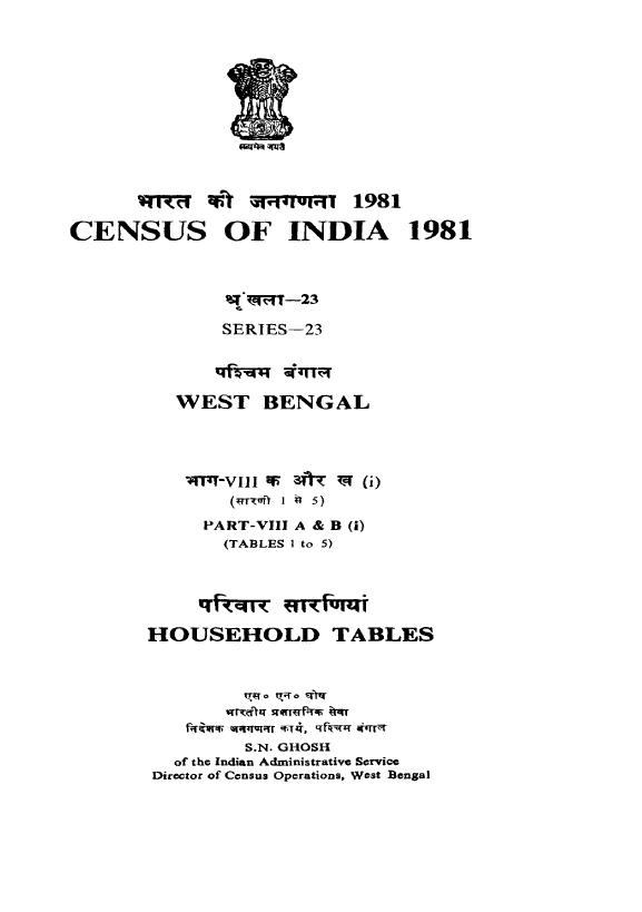 Household Tables, Part-VIII A & B (i), Series-23, West Bengal - Census 1981