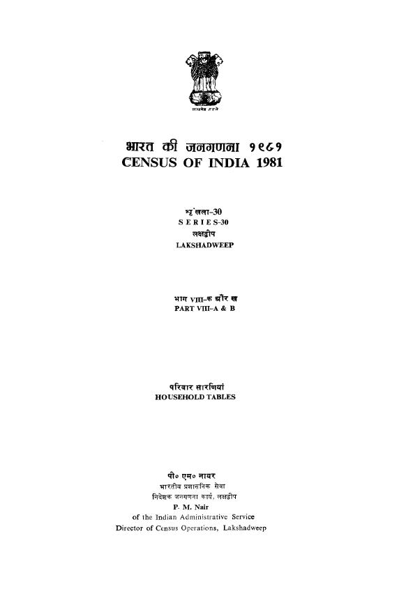 Household Tables, Part VIII-A & B, Series-30 - Census 1981