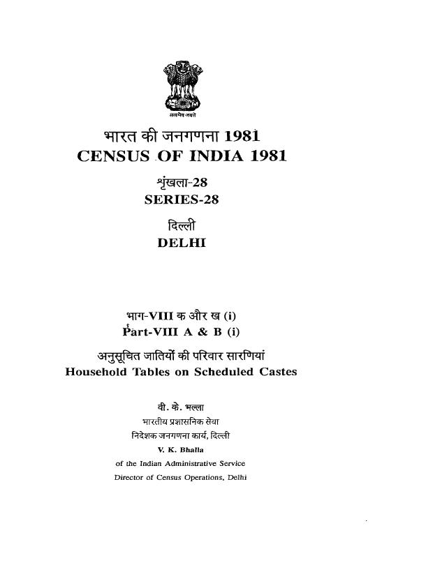 Household Tables on Scheduled Castes, Part-VIII A & B (i), Series-28, Delhi - Census 1981