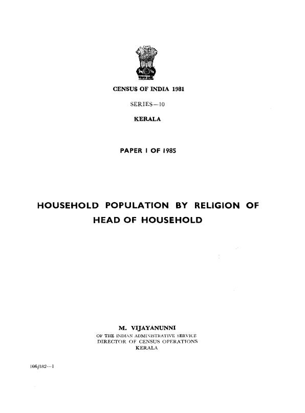 Household Population By Religion of Head of Household, Series-10 - Census 1981