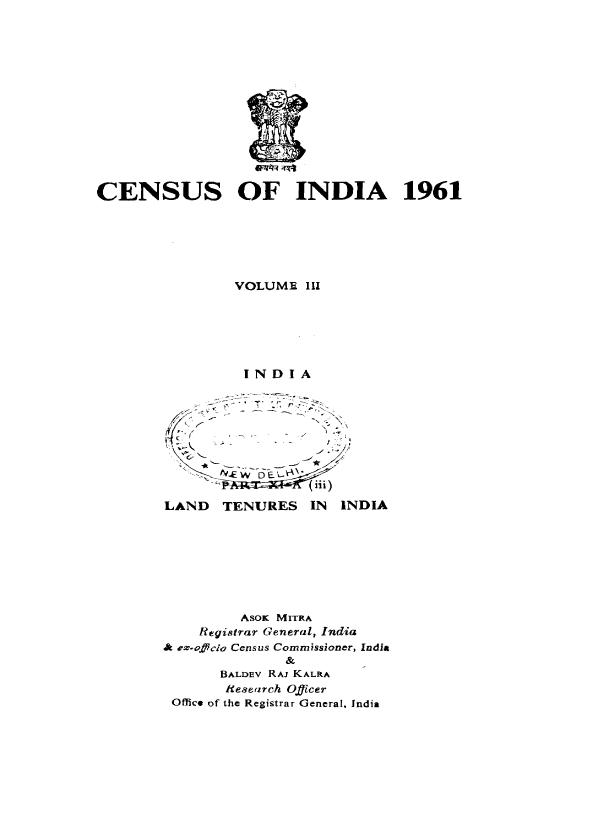 Land Tenures in India, Part XI-A (iii), Volume III, India - Census 1961