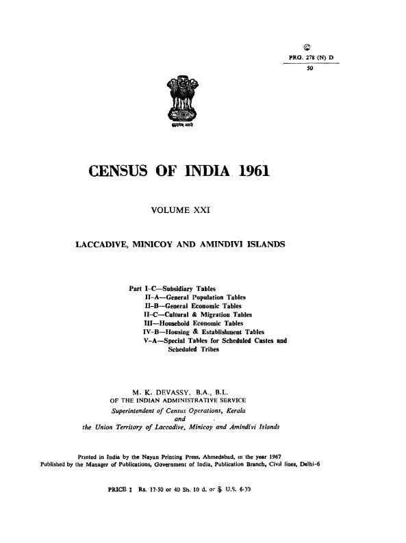 Laccadive, Minicoy and Amindivi Islands, Vol-XXI - Census 1961