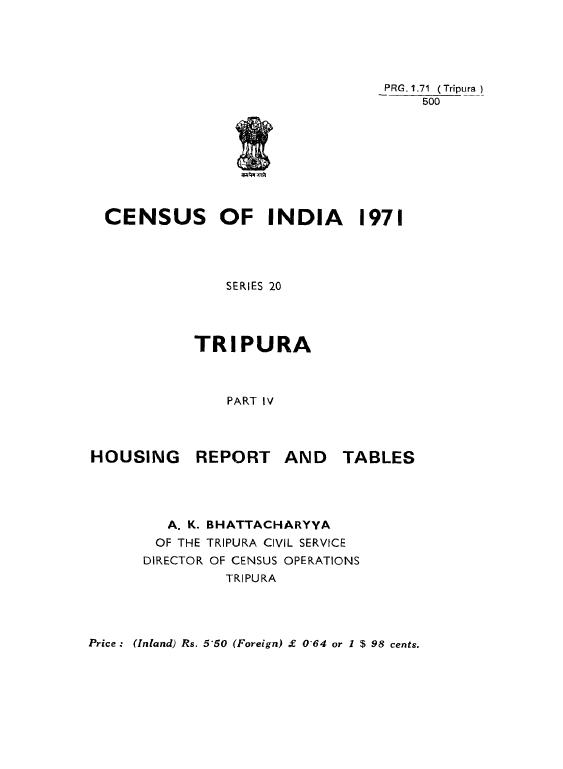 Housing Report and Tables, Part IV, Series-20, Tripura - Census 1971