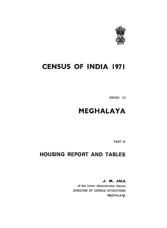 Housing Report and Tables, Part IV, Series-13, Meghalaya - Census 1971