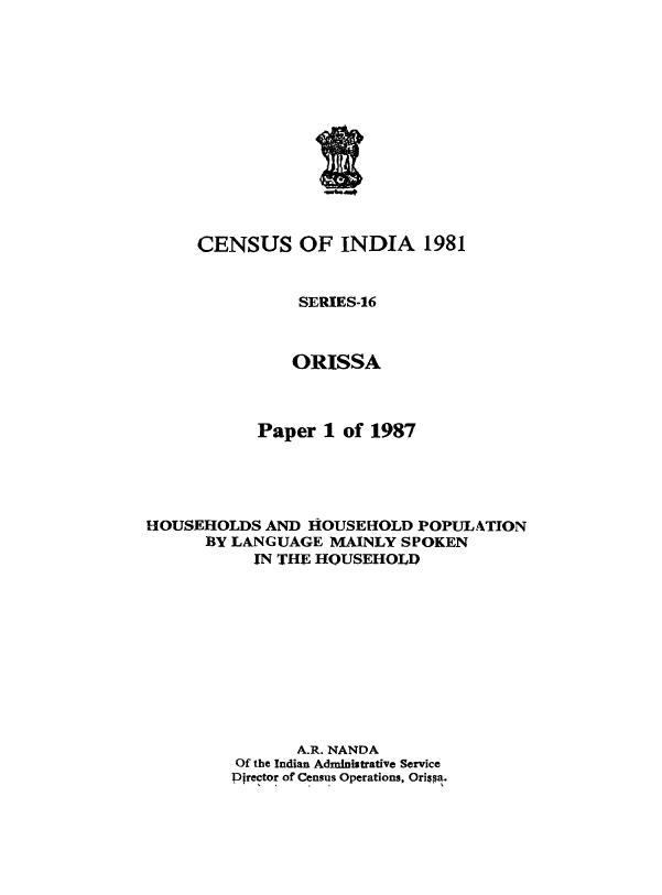 General Population Tables, Part II-A, Series-16, Orissa - Census 1981