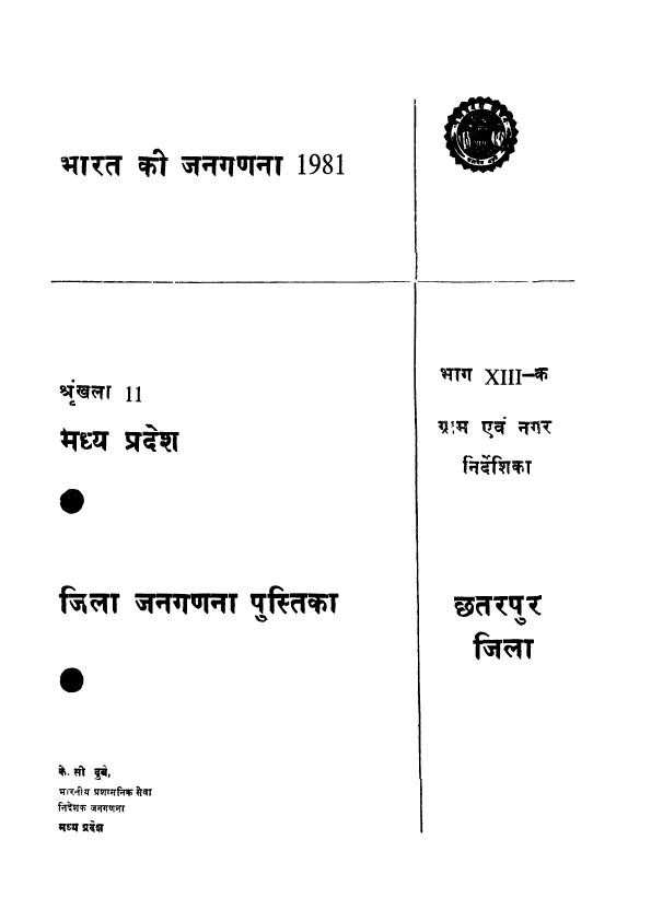 District Census Handbook, Chhatarpur, Part-XIII-A, Series-11 - Census 1981
