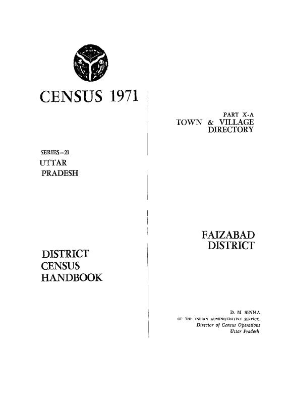 District Census Handbook, Faizabad, Part X-A, Series-21, Uttar Pradesh - Census 1971