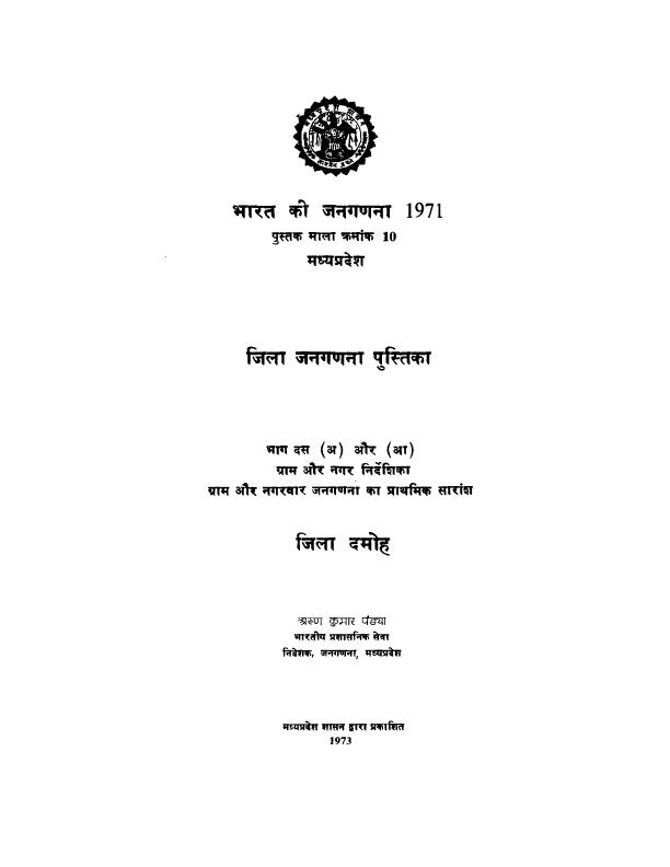 District Census Handbook, Damoh, Parts X (A) & X(B), Series-10 - Census 1971