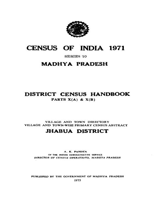 District Census Handbook, Jhabua, Part X(A) & X(B), Series-10 - Census 1971