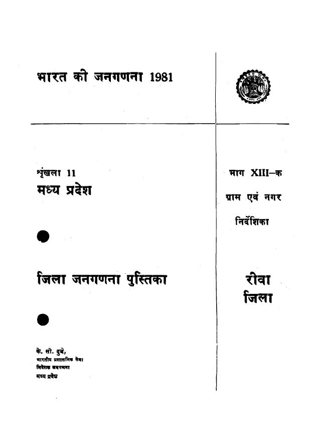 District Census Handbook, Rewa, Part XIII-A, Series-11 - Census 1981