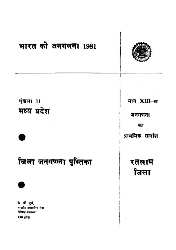 District Census Handbook, Ratlam, Part XIII-B, Series-11 - Census 1981