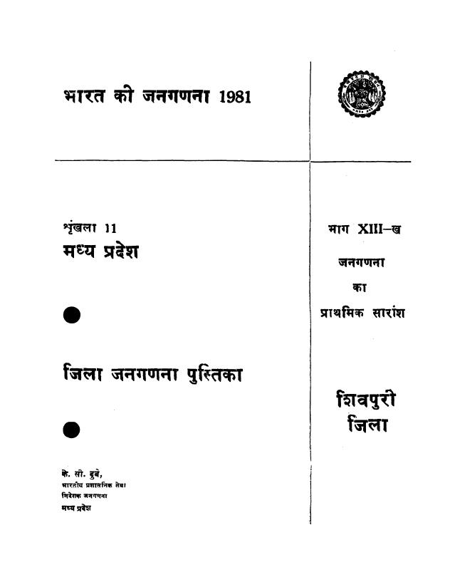 District Census Handbook, Shivpuri, Part XIII-B, Series-11 - Census 1981