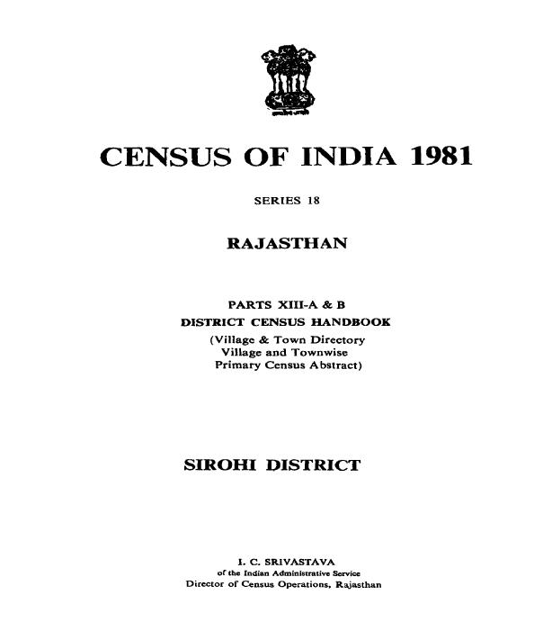 District Census Handbook, Sirohi, Part XIII-A & B, Series-18, Rajasthan - Census 1981