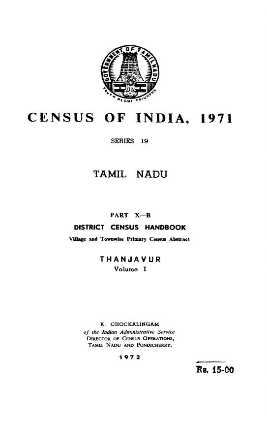 District Census Handbook, Tiruchirapalli, Part X-B, Vol-I, Series-19 - Census 1971