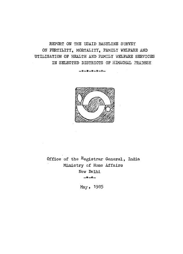Report on the Usaid Baseline Survey on Fertility, Mortality, family Welfare and Utilisation of Health and Family Welfare Services in Selected Districts of Himachal Pradesh - Census 1981