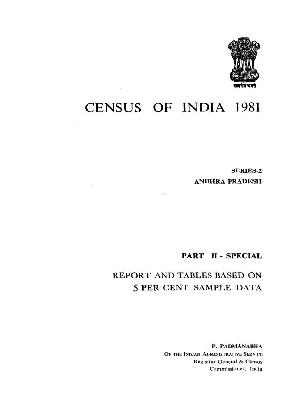 Report and Tables Based on 5 per Cent Sample Data, Part II- Special, Series-2 - Census 1981