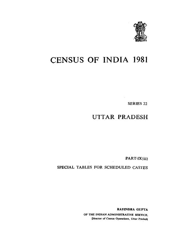 Special Tables for Scheduled Castes, Part-IX (iii), Series-22, Uttar Pradesh - Census 1981