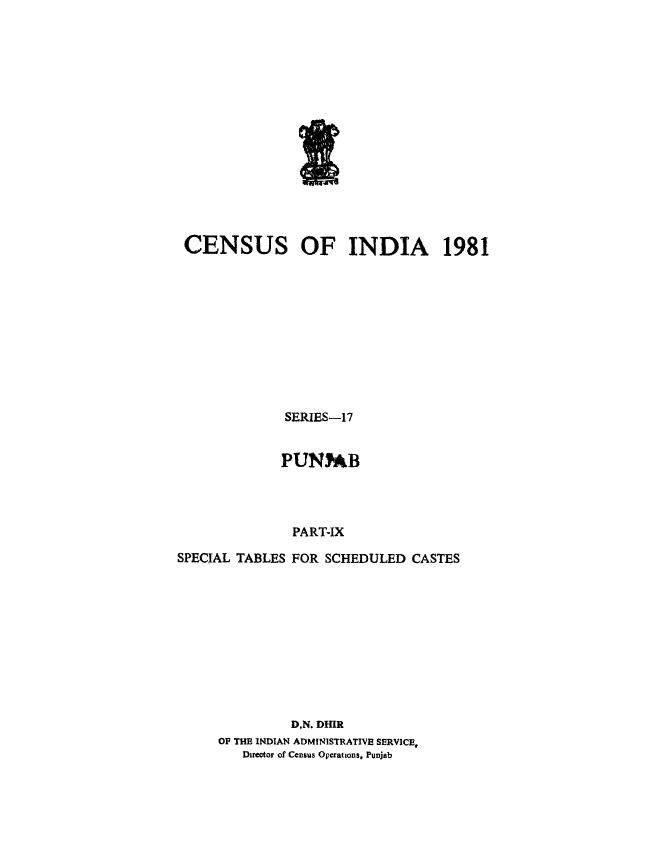Special Tables for Scheduled Castes, Part-IX, Series-17, Punjab - Census 1981