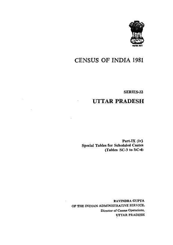 Special Tables for Scheduled Castes, Part IX (iv), Series-22, Uttar Pradesh - Census 1981