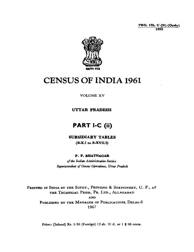 Subsidiary Tables, Part I-C (ii), Vol-XV, Uttar Pradesh - Census 1961