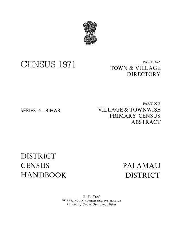 Village & Townwise Primary Census Abstract, Palamau District, Part X-B, Series-4, Bihar - Census 1971