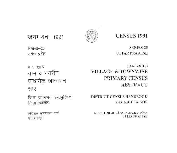 District Census Handbook District, Bijnor, Part XII-B, Series-25, Uttar Pradesh - Census 1991