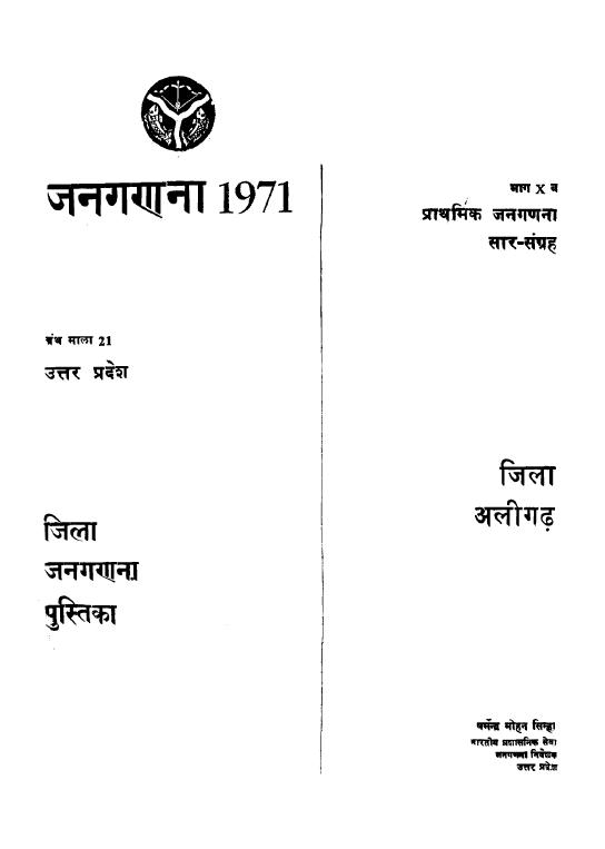 District Census Handbook, Alighad, Part X-B, Series-21, Uttar Pradesh - Census 1971