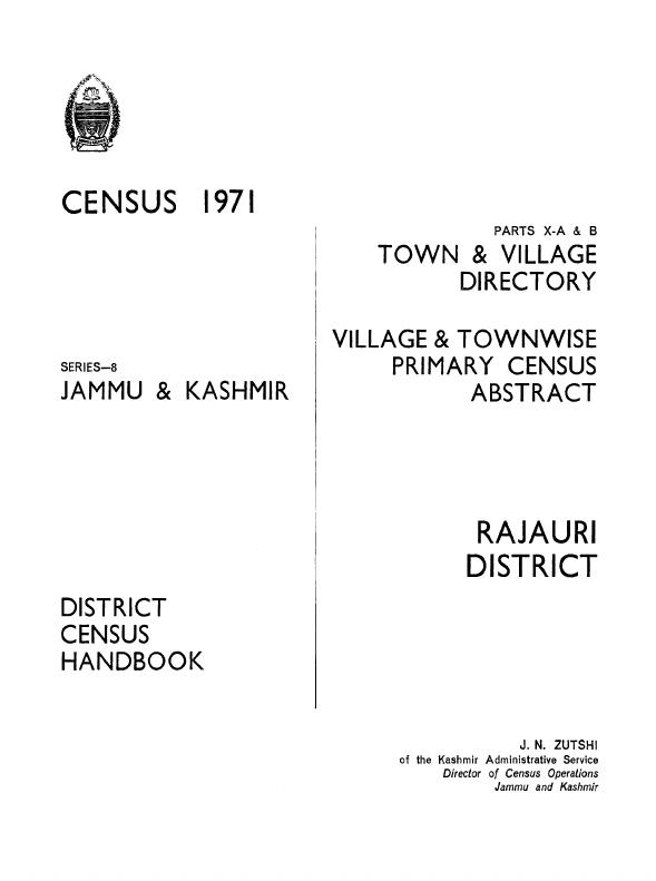 District Census Handbook, Rajauri, Parts X-A & B, Series-8 - Census 1971