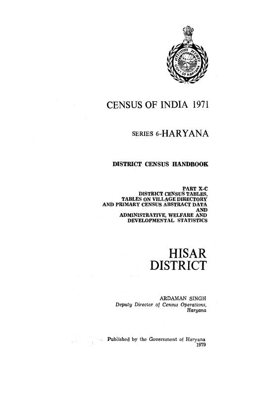 District Census Tables, Tables on Village Directory and Primary Census Abstract Data and Administrative, Welfare and Developmental Statistics, Hisar, Series-6, Haryana - Census 1971