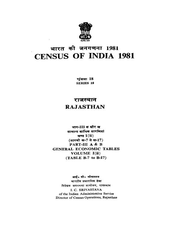 General Economic Tables, Part III-A & B, Vol-I (ii), Series-18, Rajasthan - Census 1981